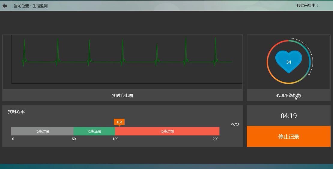 智能身心反饋訓(xùn)練系統(tǒng)基于生物反饋原理、音樂療法原理,實時評估情緒狀態(tài),通過主動學(xué)習(xí)、強(qiáng)化訓(xùn)練的方式。讓使用者學(xué)會自我情緒控制,維護(hù)日常身心健康。