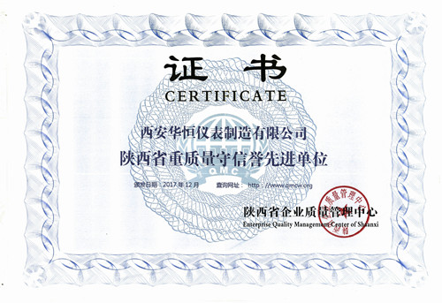 西安華恒儀表制造有限公司:部分榮譽證書展示