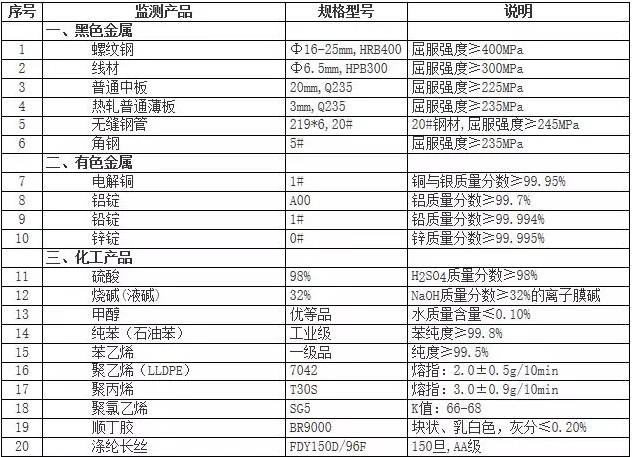流通領(lǐng)域重要生產(chǎn)資料市場價(jià)格監(jiān)測產(chǎn)品規(guī)格說明表