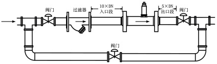 ?。?)水平安裝傳感器要求管道不應(yīng)有目測可察覺的傾斜(一般在5°以內(nèi)),垂直安裝傳感 器管道垂直度偏差亦應(yīng)小于 5°。在不能停流的場所,應(yīng)裝旁通管和可靠的截止閥,測量時要確保旁通管無泄漏。