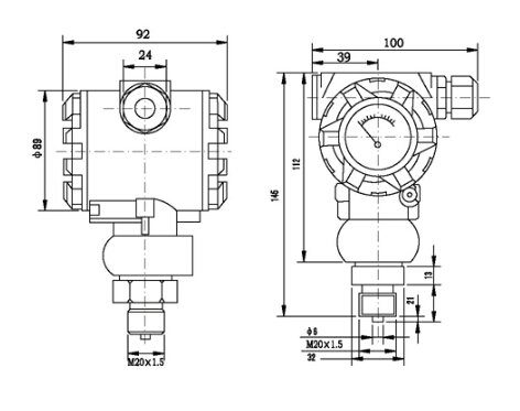 擴(kuò)散硅壓力變送器外形尺寸