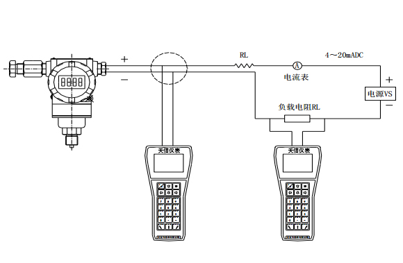 該產品為兩線制方式工作,可直接替代模擬兩線制4~20mADC輸出變送器。可與天信HART475型手操器進行數字通訊。