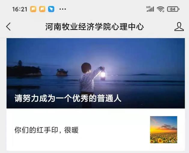 河南牧業(yè)經(jīng)濟(jì)學(xué)院心理中心微信公眾平臺(tái),定期更新心理健康科普文章,讓您輕松獲取與生活、學(xué)習(xí)密切相關(guān)的心理學(xué)知識(shí)及心理健康調(diào)節(jié)方法。